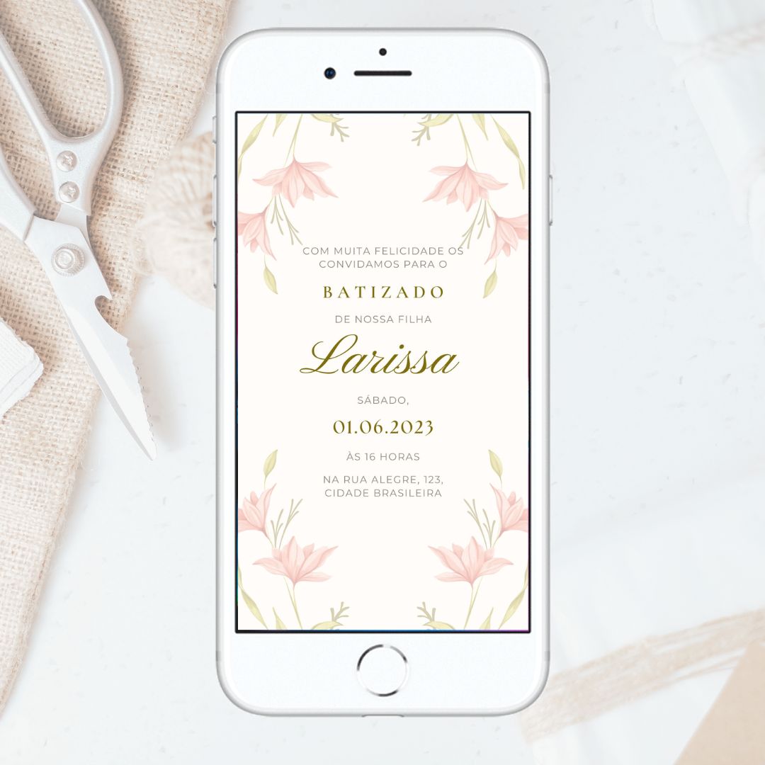 Convite de Batizado Delicado Elegante e Floral Cb0002