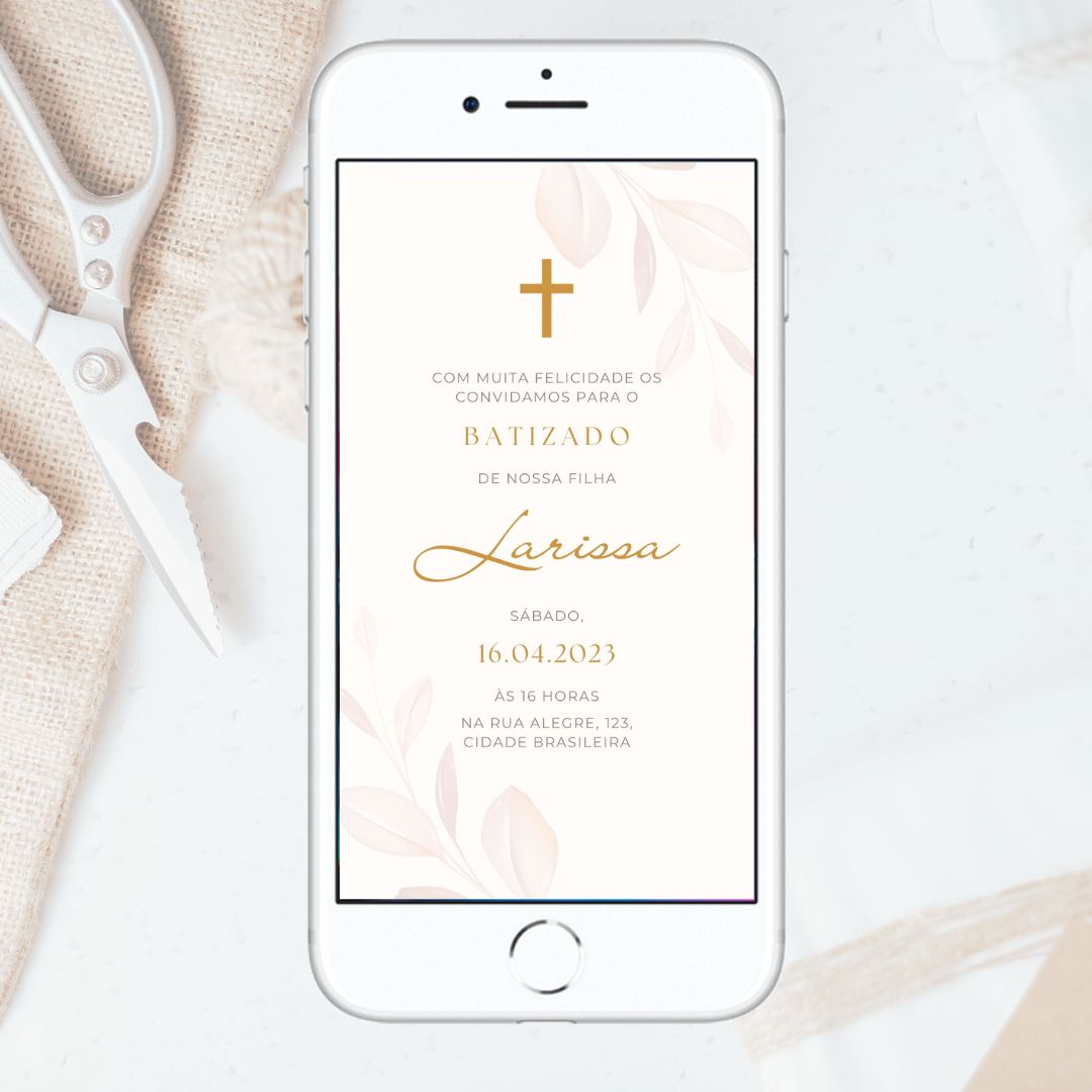 Convite de Batizado Minimalista Delicado e Floral CB0004.