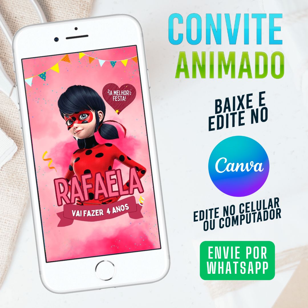 Convite Ladybug Miraculous Paris Heroína - Festa Super-Heroína Animada