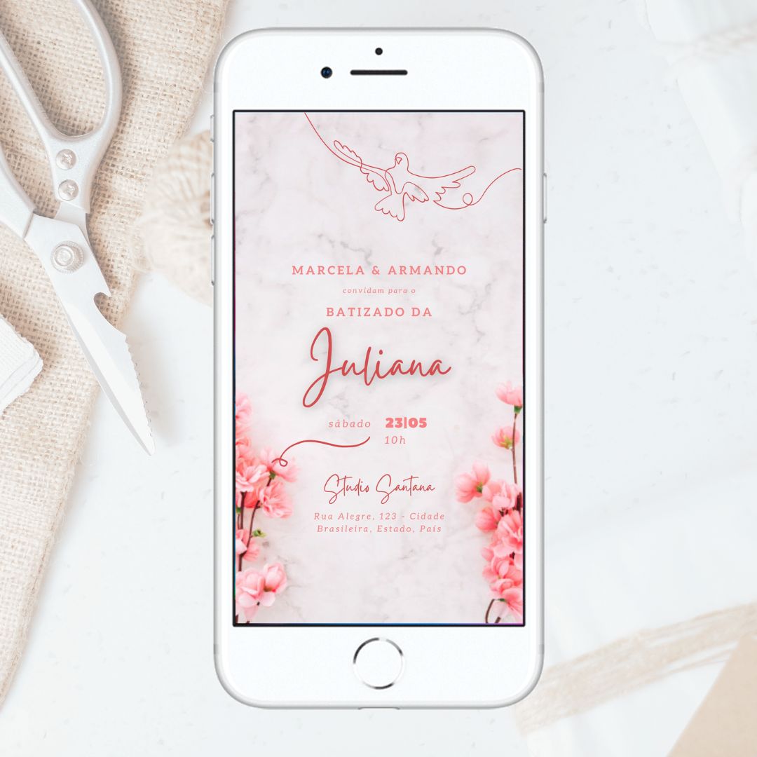 Convite virtual batizado bebê flor CB0005.